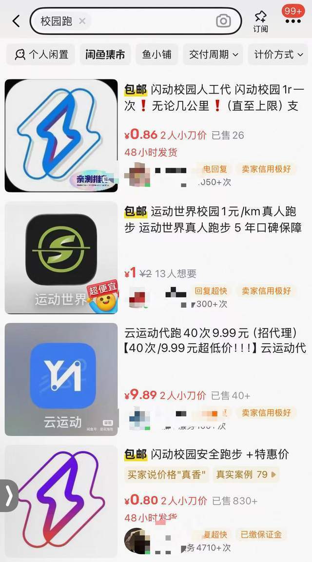 记者搜索某二手交易平台发现,多个商户售卖“校园乐跑”等平台的作弊软件,也有个人卖家提供校园代跑的付费服务。